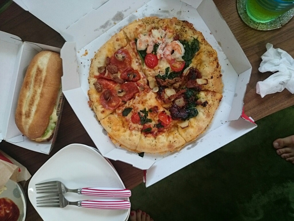 家でドミノ・ピザ食う。