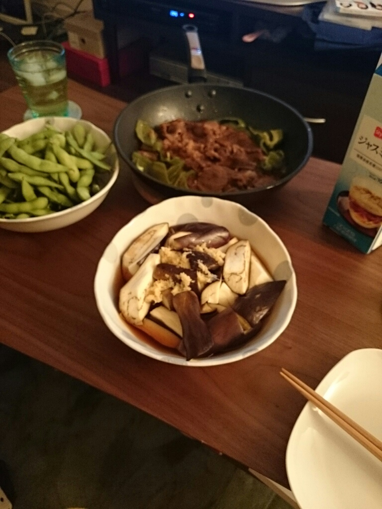 つかさには、事務所で貰った枝豆と茄子の消費を手伝って貰いました。