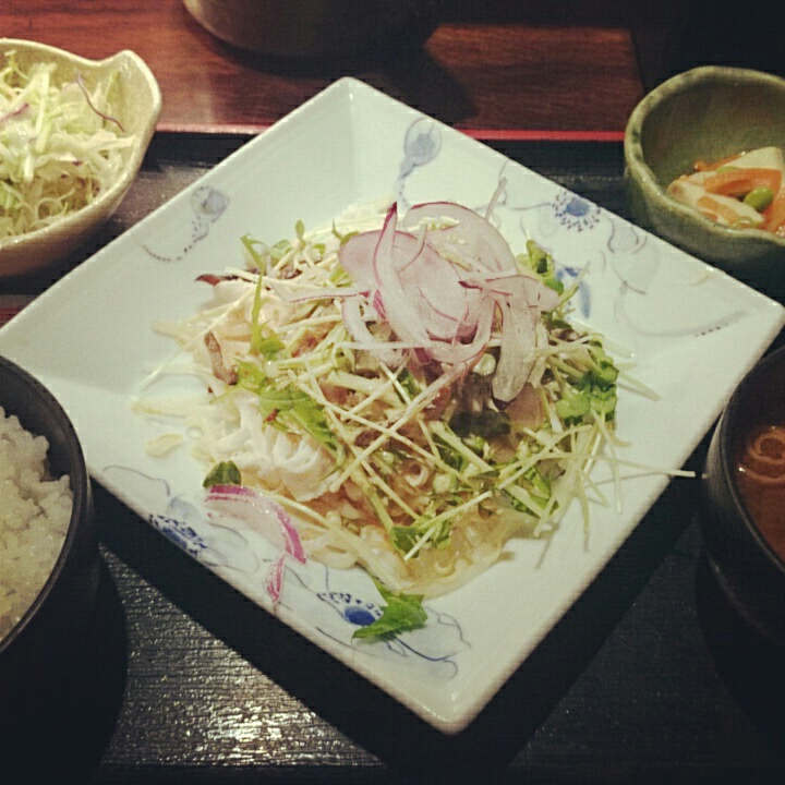 今日のお昼は野菜多めに豚しゃぶ野菜うんちゃら定食にしてみたりとかして。