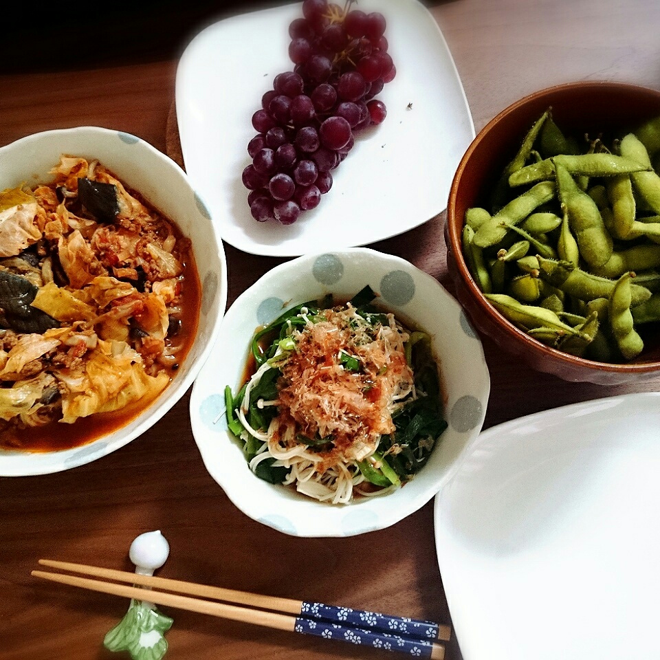 つかさには、事務所で貰った枝豆と茄子の消費を手伝って貰いました。